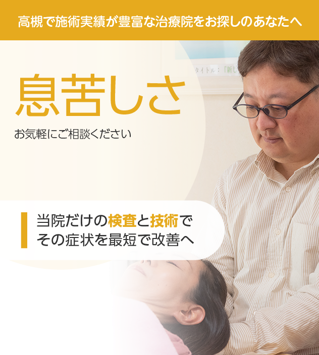 当院では、さまざまな症状でお困りの方が多くお越しいただいていますが、その中で、息苦しさでお悩みの人も、多く来院されています。