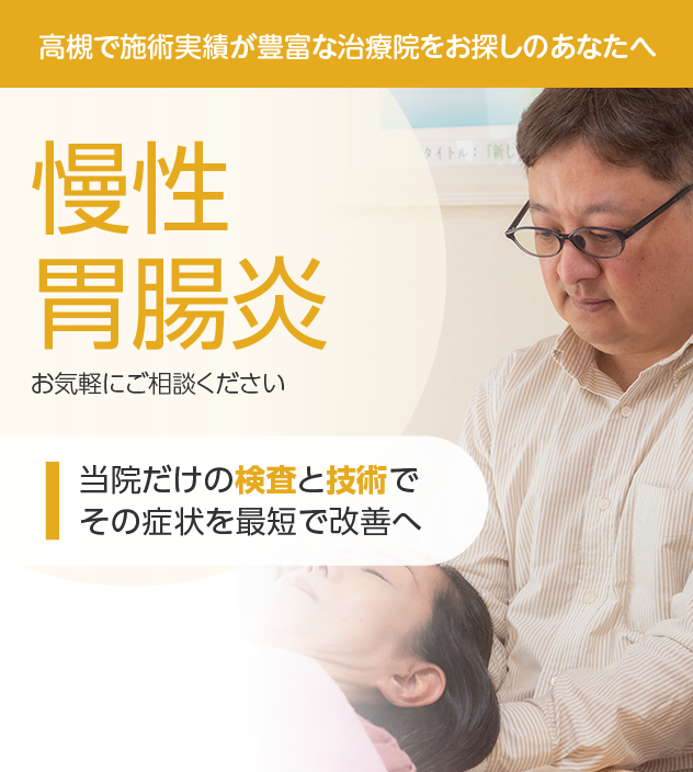 当院では、さまざまな症状でお困りの方が多くお越しいただいていますが、その中で、慢性胃腸炎でお悩みの人も、多く来院されています。