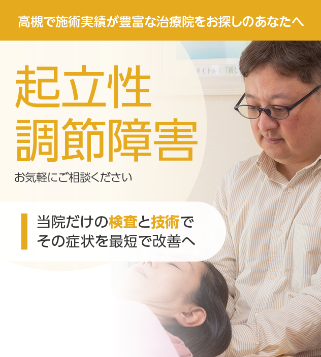 自律神経の調整機能の乱れが主な原因で、立ち上がったときの血圧や脈拍の変化が特徴だと言えますが、さまざまなパターンがあります。