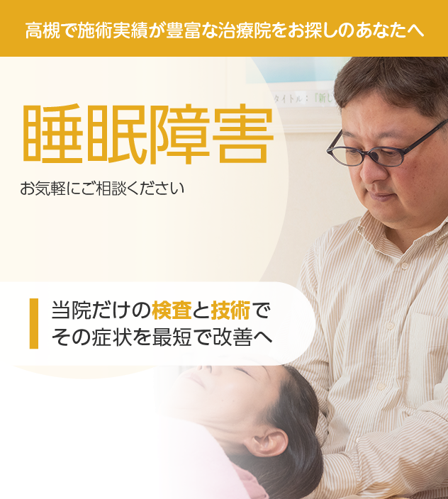 当院では、さまざまな症状でお困りの方が多くお越しいただいていますが、その中でも、睡眠障害でお悩みの人は、特に多く来院されています。